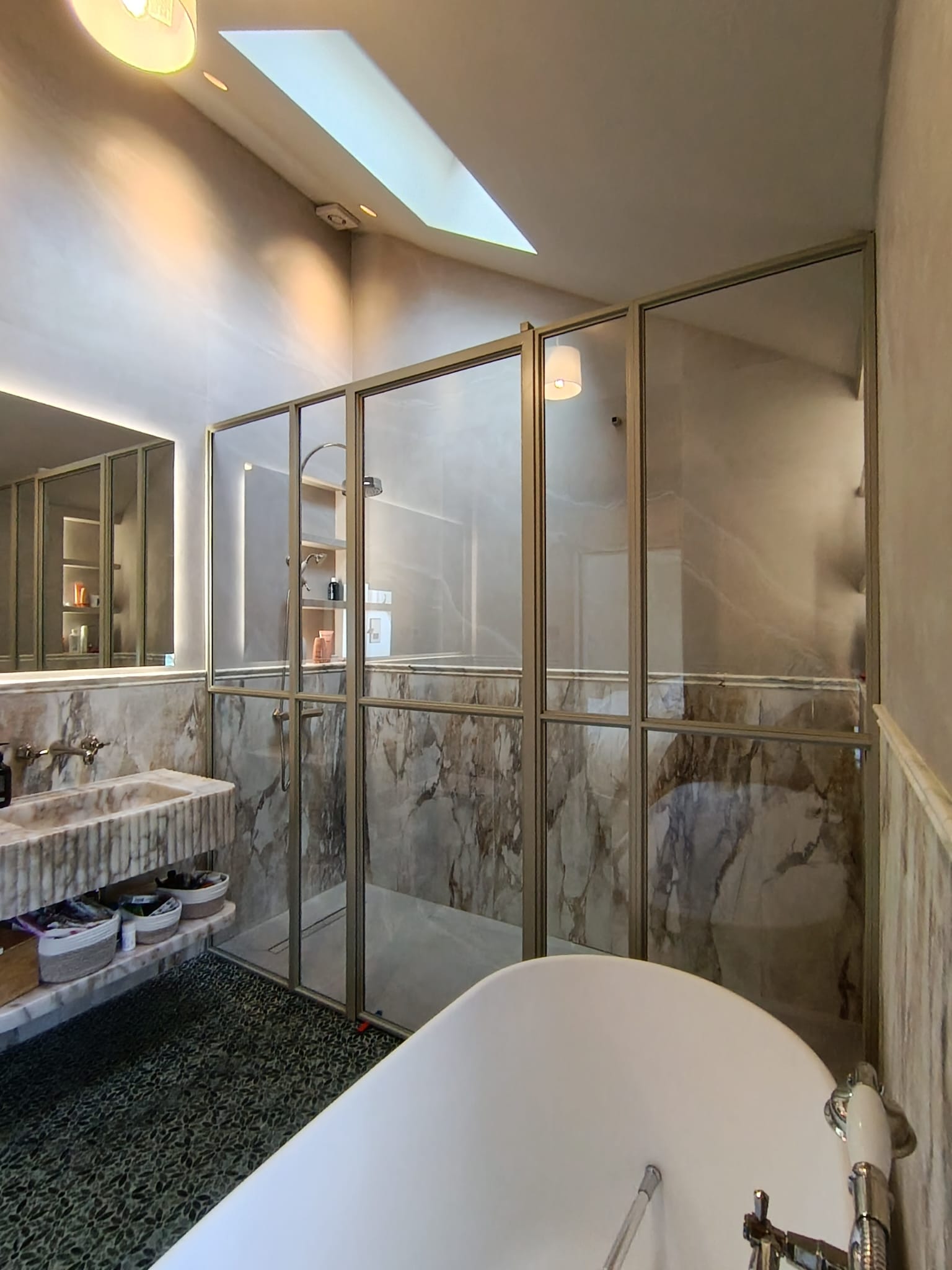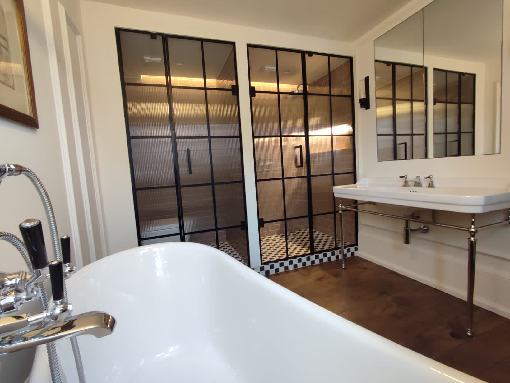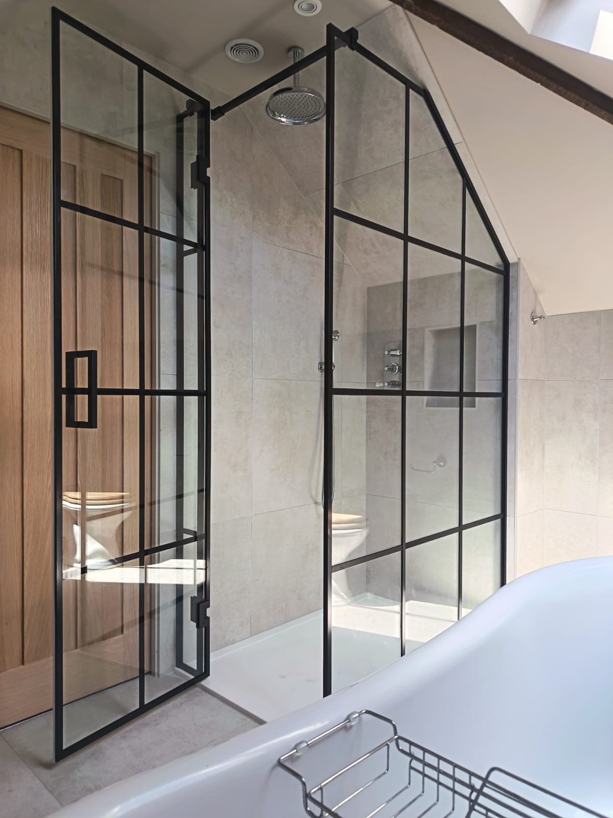Crittall-style shower enclosures add a bold, architectural feature to modern bathrooms, combining timeless design with everyday practicality. Our bespoke steel-look shower screens are made to measure and professionally installed, delivering a striking industrial finish without compromising on safety, durability, or performance.