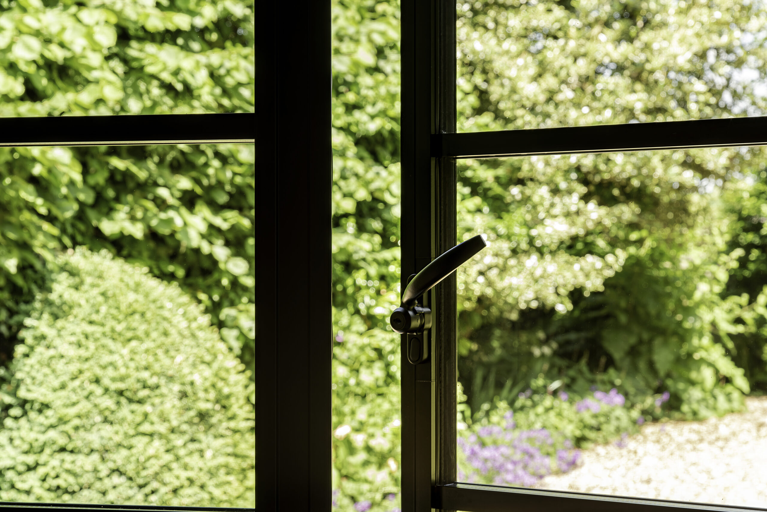 The 25mm astragal bars and matte black 9005 finish perfectly replicate the charm of heritage steel systems, while delivering the energy efficiency and weather protection of advanced aluminium.
