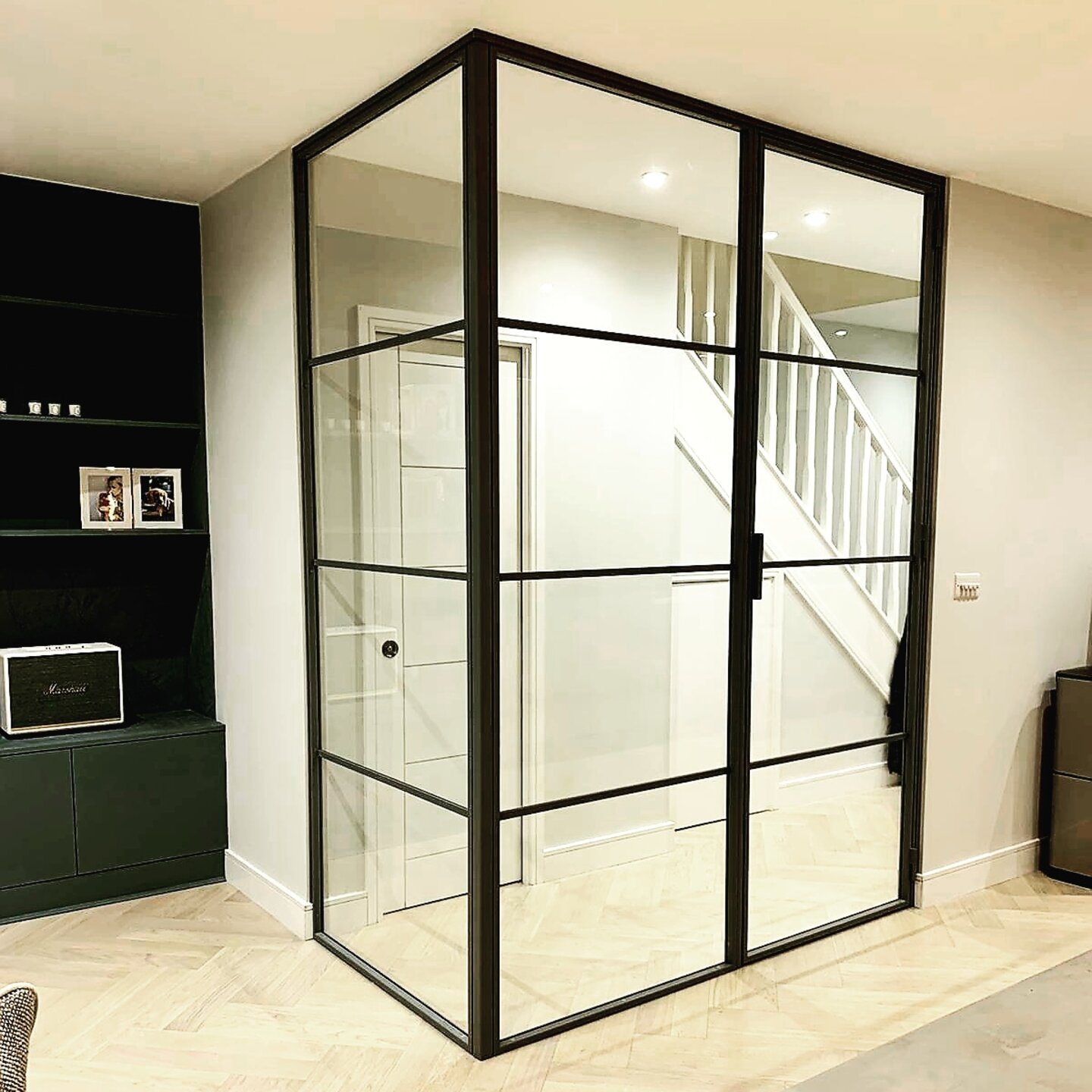 Interior Crittall-style screening is a refined way to divide internal spaces while maintaining light, flow, and a strong architectural presence. Our bespoke internal glass screens and doors are made to measure and professionally installed, creating elegant, functional interiors for homes and commercial spaces.