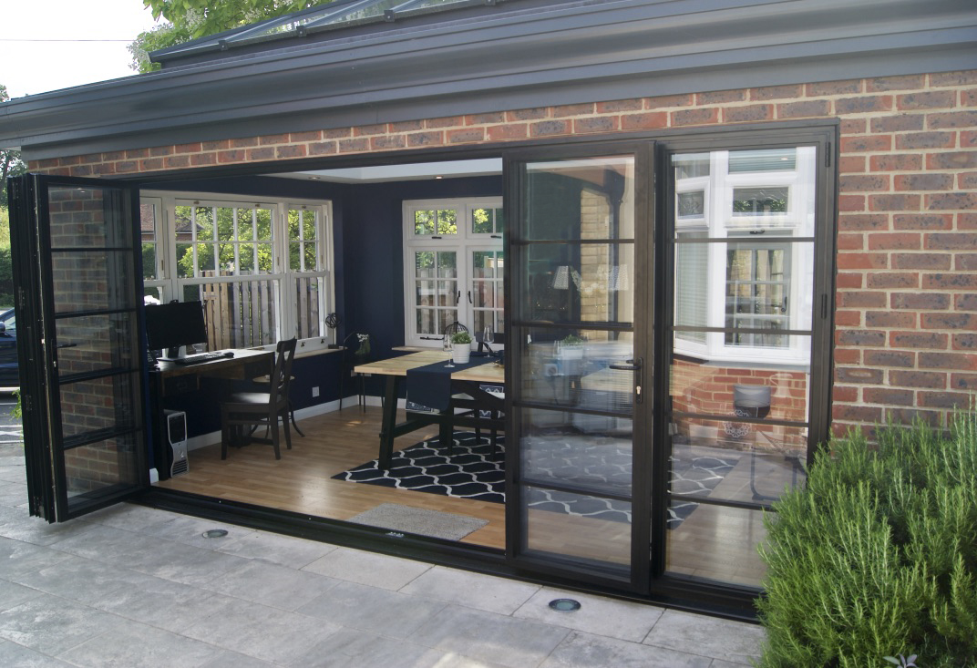 Add a hinged access leaf within the bi-fold for quick in-and-out use—ideal for the school run or letting the dog out without opening the entire set.