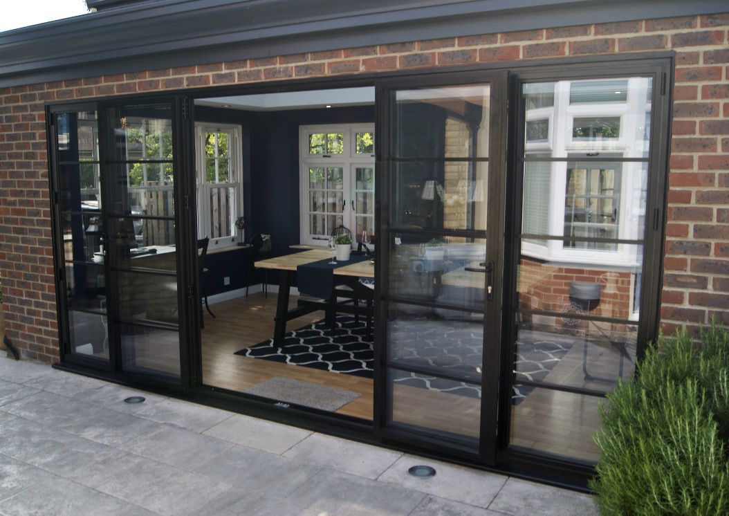 Open up your home with beautifully crafted black aluminium bi-fold doors, blending warmth, light, and effortless functionality.