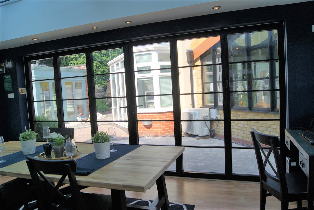 Industrial elegance with slim transoms and classic sightlines — our steel-look bi-folds create a statement style while keeping performance high and maintenance low.